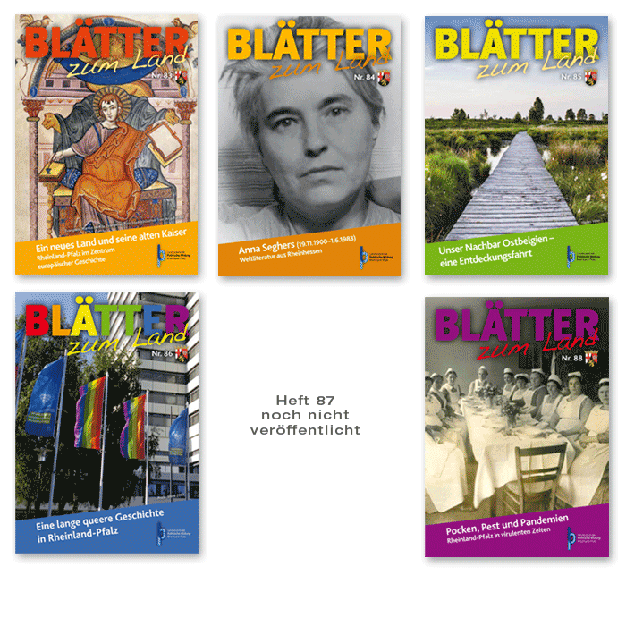 Die Blätter zum Land publizieren unterschiedlichste Themen aus Rheinland-Pfalz. Diese Schriftenreihe ist wegen seiner oft sehr umfangreichen Inhalte und seinem illustrativen Erscheinugsbild sehr populär und äußerst efolgreich. |
